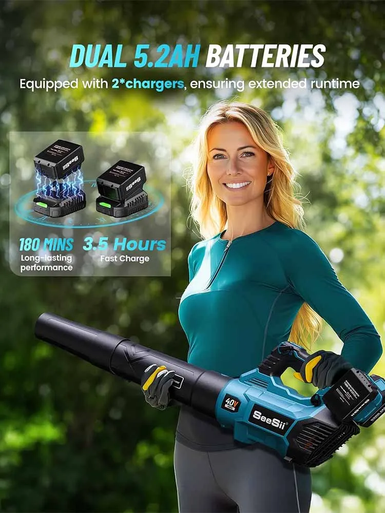 Questions fréquentes sur Seesii 40V ventilateur Turbo électrique sans brosse 680CFM souffleur de feuilles sans fil 20000 tr/min double batterie travail pour les débris de soins de la pelouse poussière