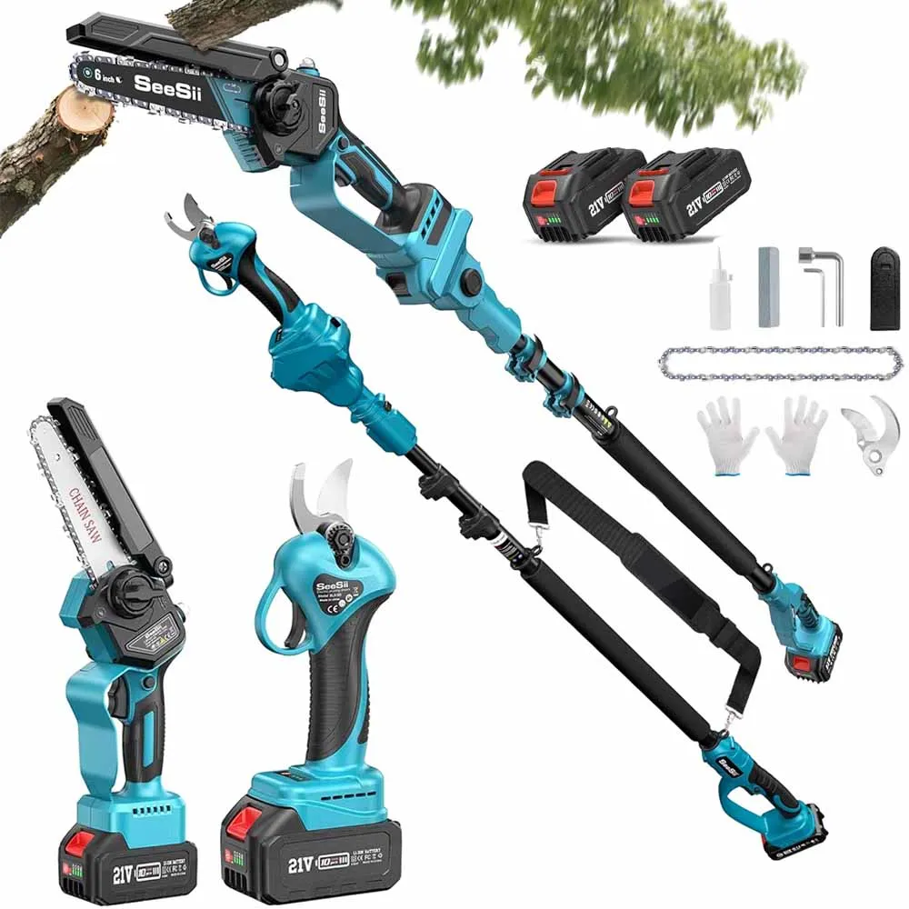 Seesii Seesii – ciseaux électriques 3 en 1, 33MM, pôle télescopique de 2.8m, scie à chaîne de 6 pouces, outil d'élagage de jardin à branches hautes pour broche de batterie Makita 18V