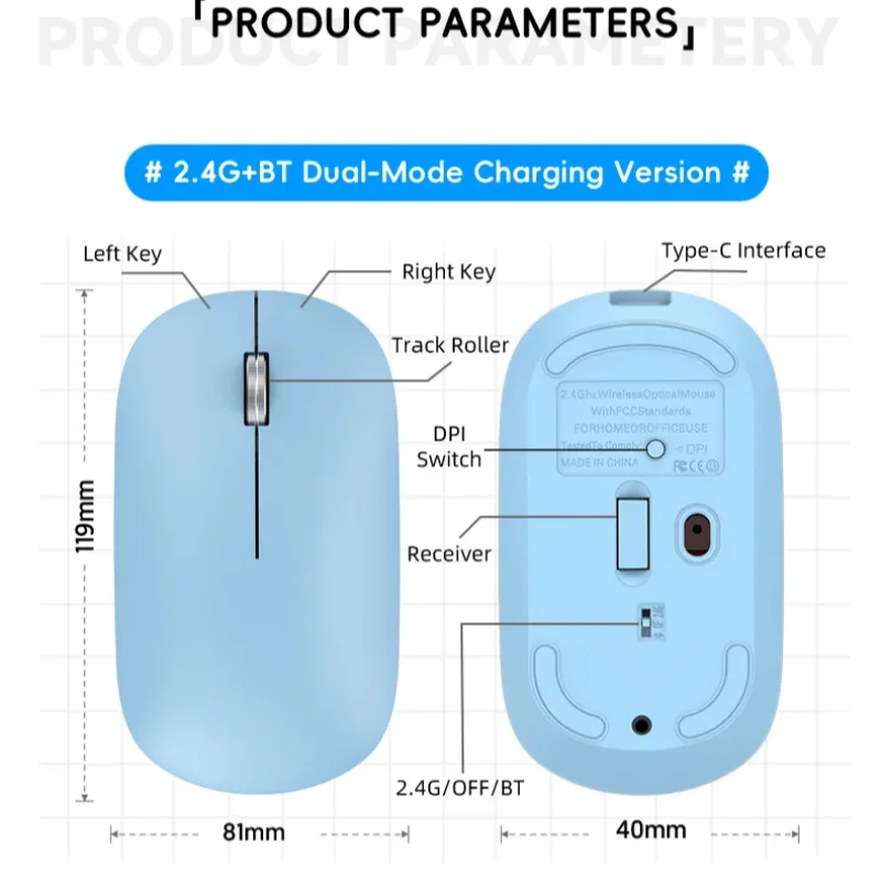 Présentation du Souris sans fil Bluetooth 2,4 G double mode, DPI réglable, rechargeable Type-C, silencieuse, ergonomique, portable, pour bureau 2026