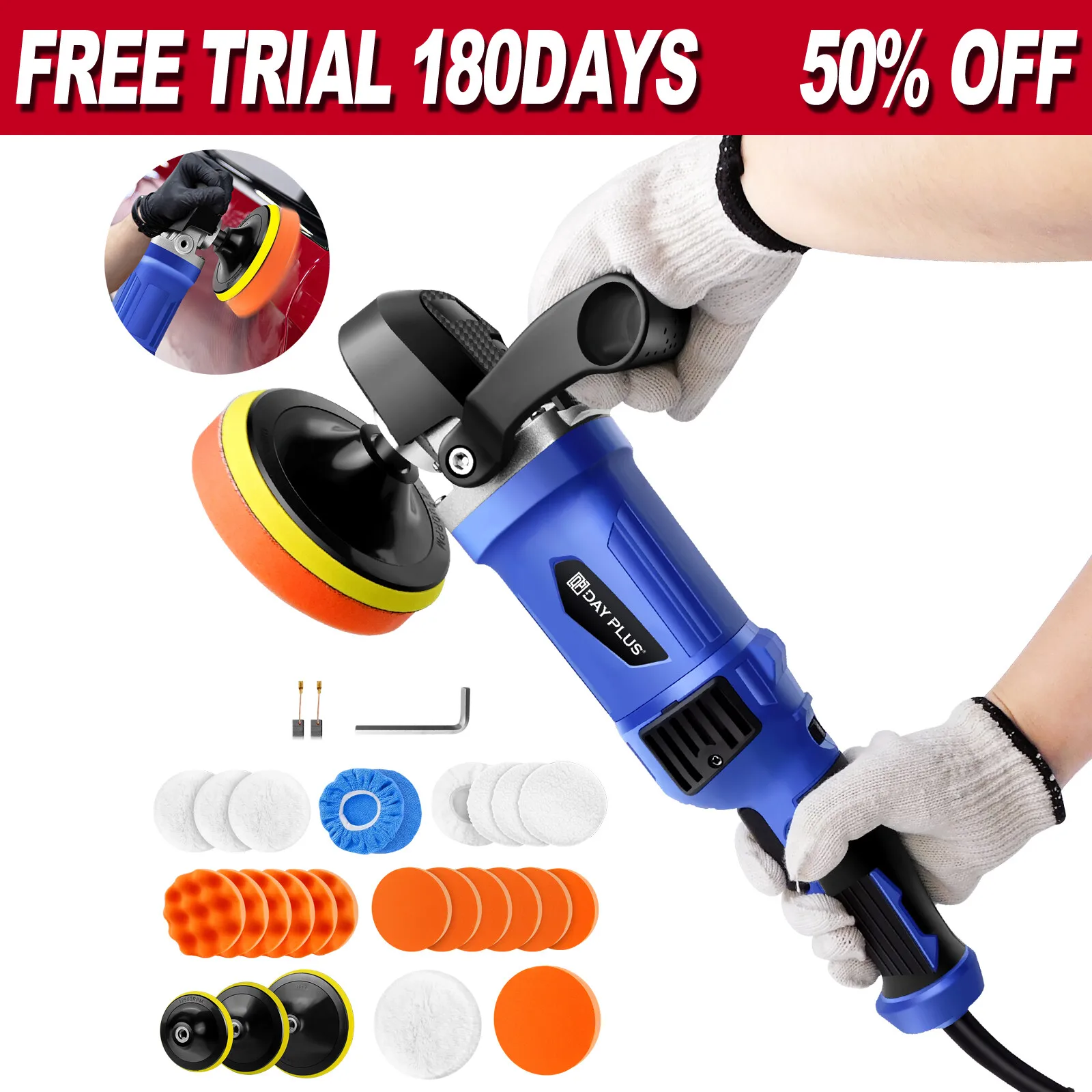 Questions fréquentes sur Tampon de polissage de voiture à double Action 1400W 110V avec disques de 150mm à 180mm, Kit de cirage pour poncer 6 vitesses variables pour le polissage de voitures