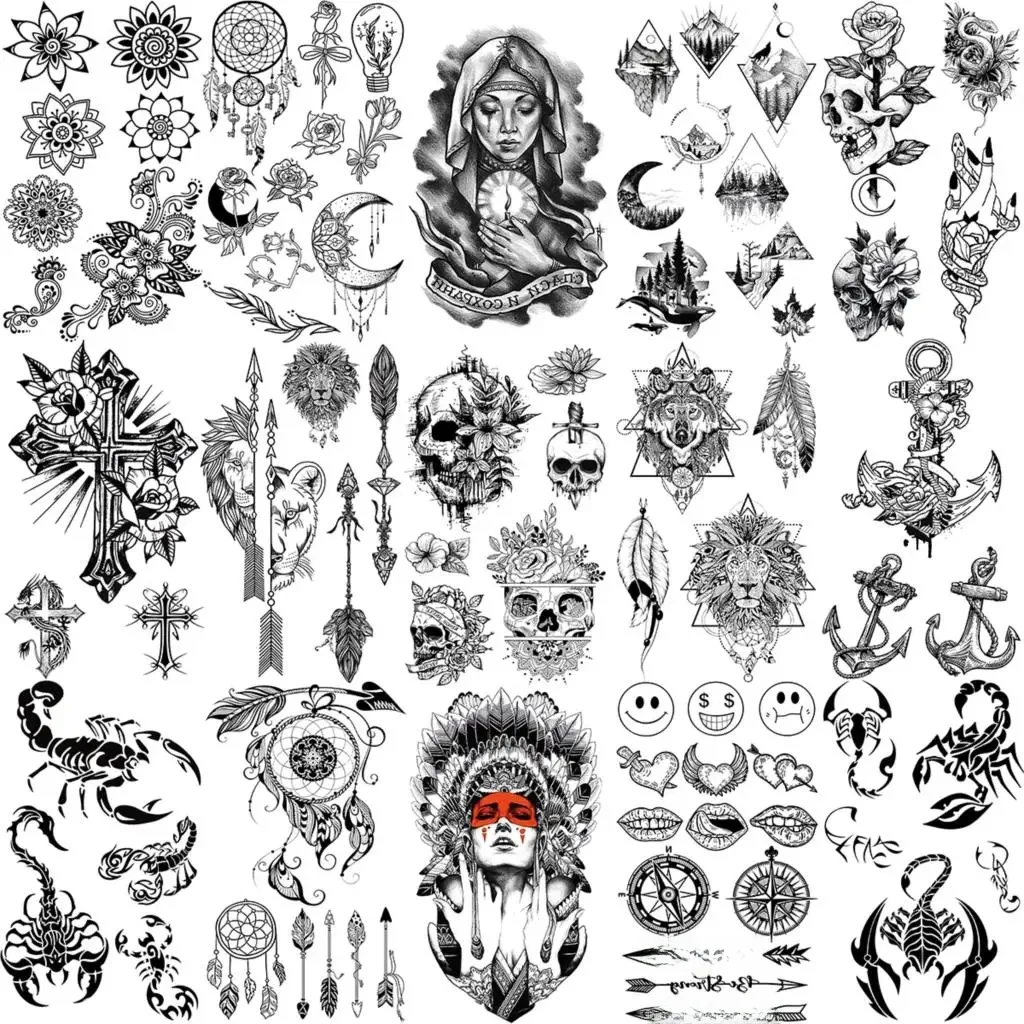 COKTAK propose Tatouages Temporaires en Forme de Petit Crâne, Henné, Plume, Flèche, Croisé, Injecteur de Scorpion, Faux Tatouage, Cou, Bras, Doigt, pour Femme Adulte et Enfant chez 1 revendeurs. Utilisez notre comparateur pour le meilleur prix. Des 0,85 €.