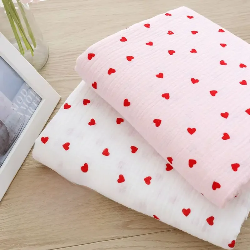 Tissu à coudre en coton imprimé cœur doux, crêpe Double couche de gaze, matériel de serviette pour la saint-valentin, bricolage, YHW 300530