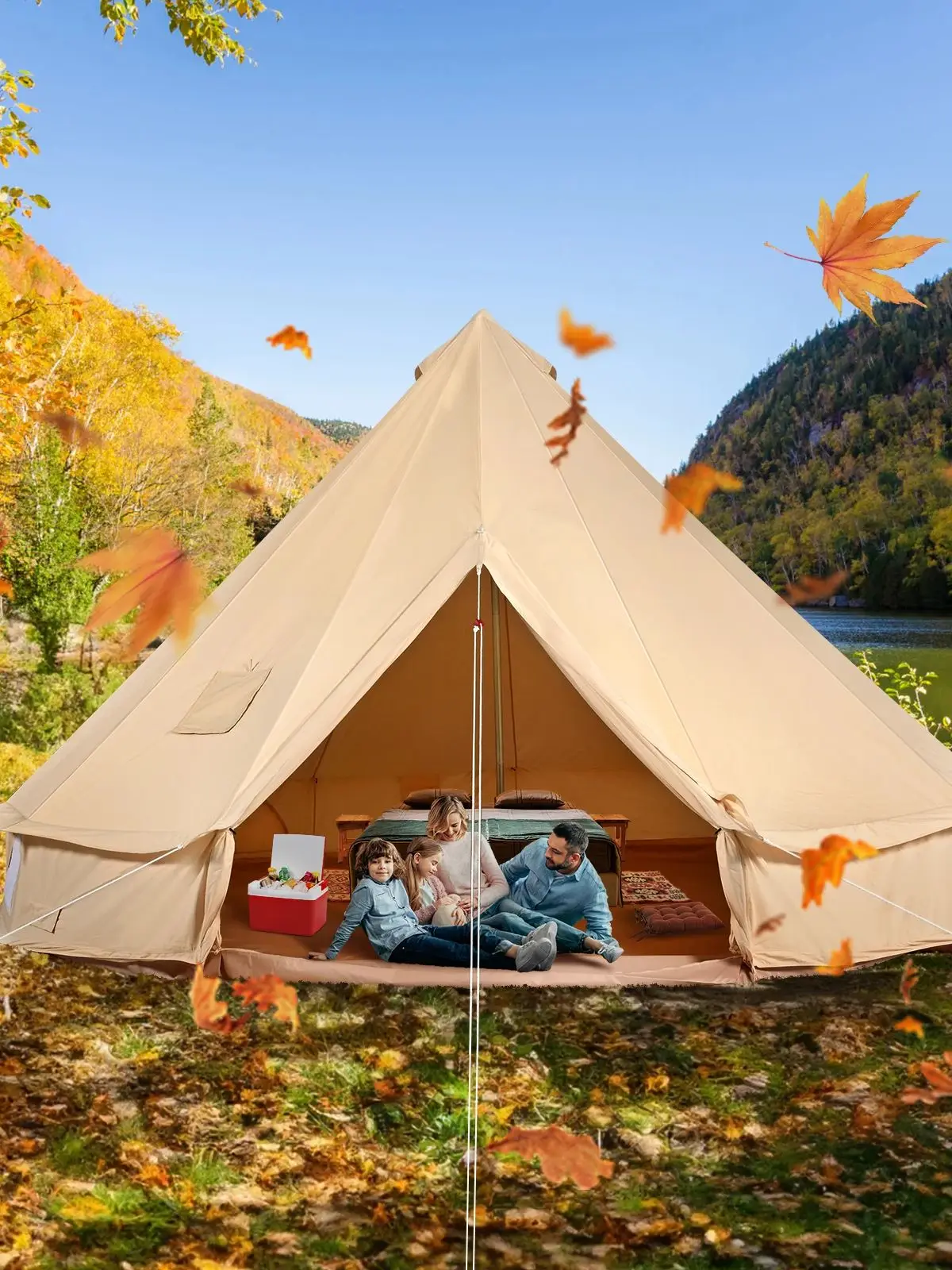 Questions fréquentes sur VEVOR Tente Cloche en Toile 4 m Tente de Yourte 4 Saisons Tente de Camping Familial avec Trou de Poêle à Bois, Sacs de Rangement pour Glamping Jusqu'à 6 Personnes, Groupes en Plein Air, Fête, Chasse