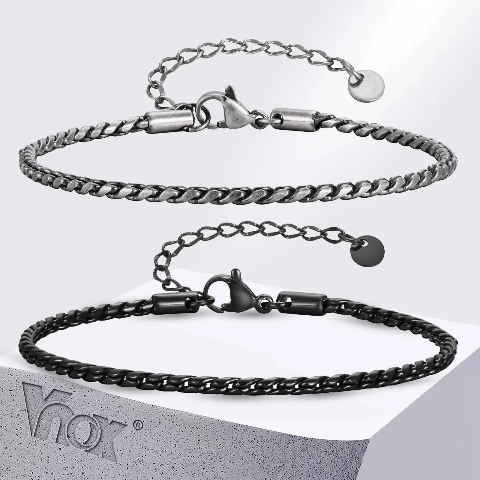 Vnox – Bracelets à maillons serpent fins de 2.5mm pour hommes, adolescents et garçons, Bracelets à chaîne torsadée réglables en acier inoxydable, bijoux en métal simples