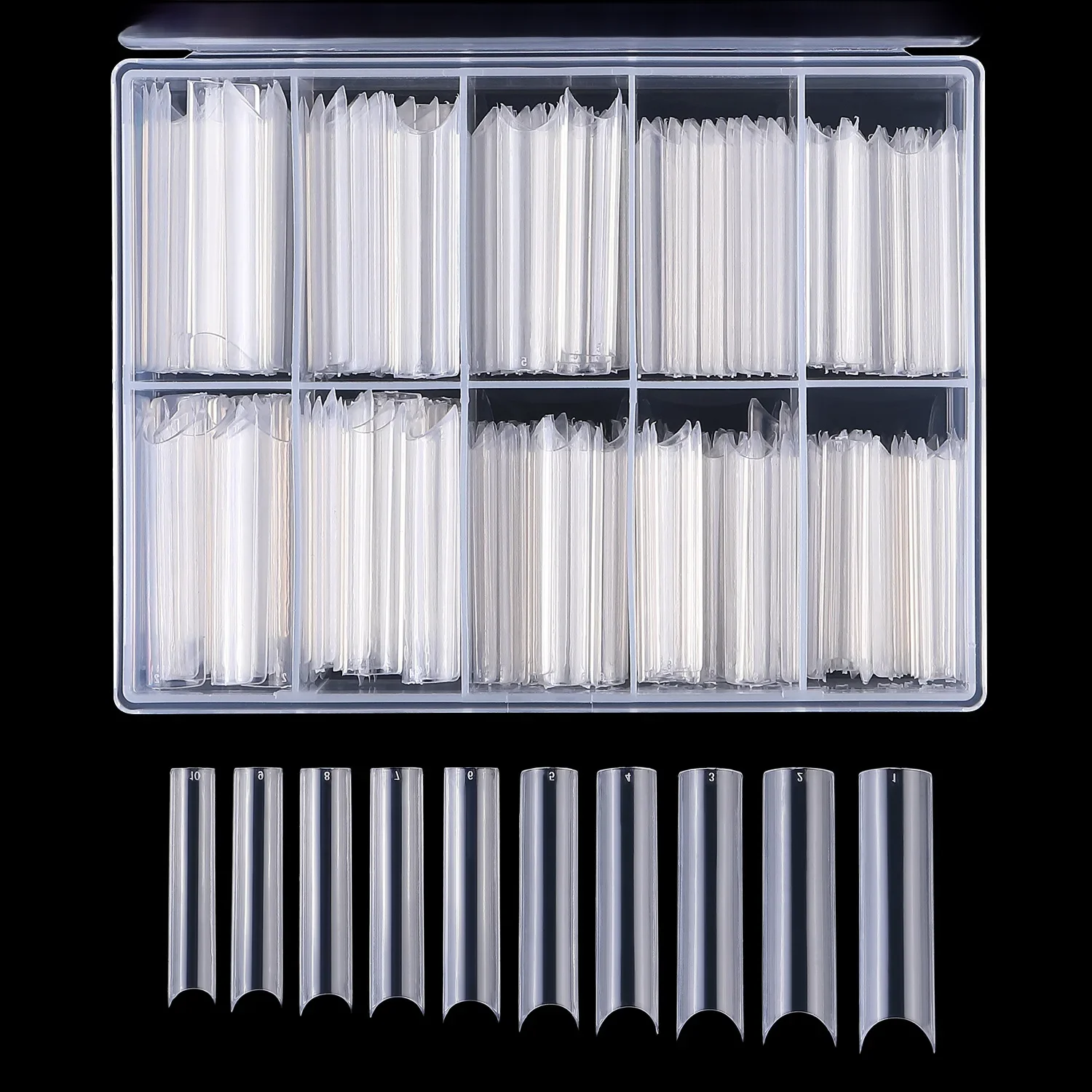 XXL – pointes de forme carrée longues et droites pour faux ongles en acrylique, avec boîte, pointes de courbe Extra longues XL C, demi-couverture, outil de manucure